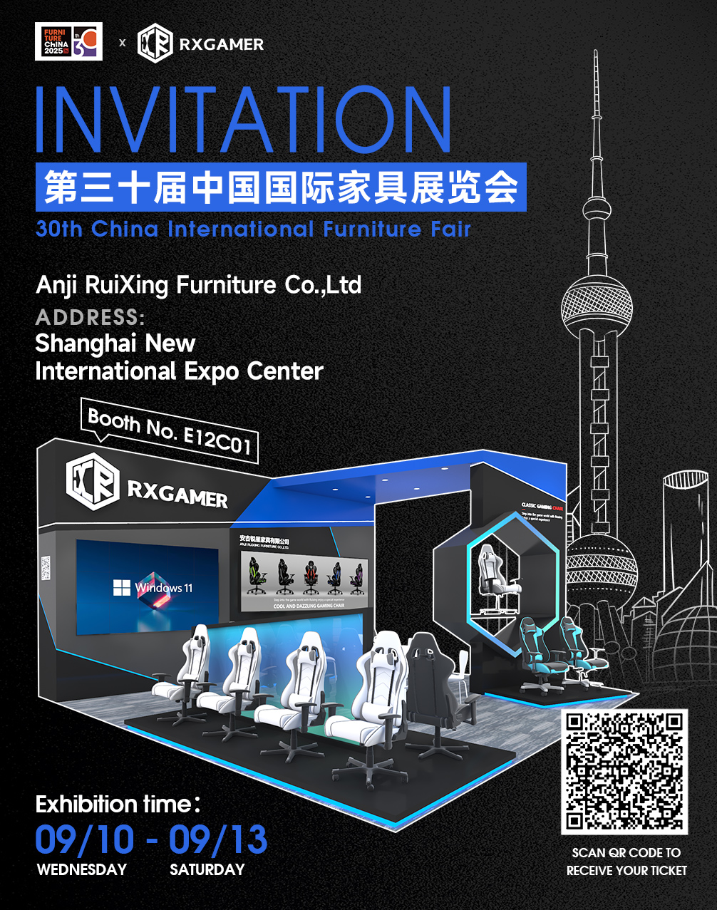 [Shanghai Nieuw Internationaal Expocentrum, 10-13 september 2025] — Sharp Star nodigt internationale kopers, ontwerpers en professionals uit de industrie oprecht uit voor de 30e China International Furniture Fair, het Aziatische platform voor meubelinnovatie en zakelijke kansen. Als exposant presenteren wij onze nieuwste serie gamingstoelen, de RX-K6-6301. Ik kijk ernaar uit u te ontmoeten in Shanghai!