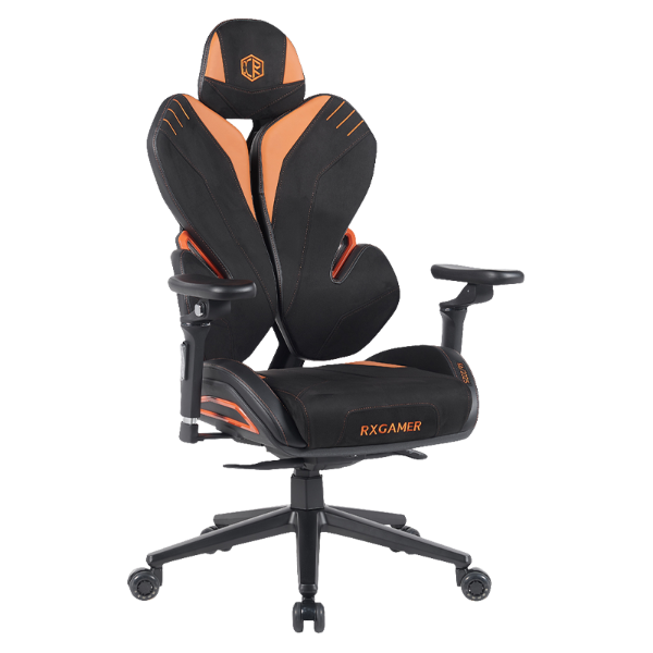 De RXGAMER RX-K6-6201 bevat een stoffencombinatie die comfort en veerkrachtig in evenwicht brengt. Het ontwerp bestaat uit zwart suède fluweel, zwart materiaal dat in vier richtingen rekt en amberoranje stof. Door deze combinatie kan het zitoppervlak zich aanpassen aan de lichaamsbewegingen, terwijl een verfijnde visuele uitstraling behouden blijft die geschikt is voor moderne gaming-opstellingen.